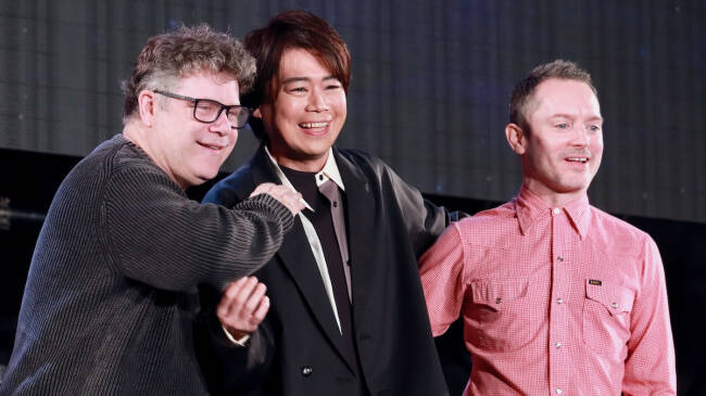 最後にウッド、アスティン、浪川の3名によるフォトセッションの時間になると、ウッドは脇に並ぼうとした浪川を「No! No!」と真ん中に迎え入れ、肩を抱き合いながらカメラに笑顔を見せたのだった。