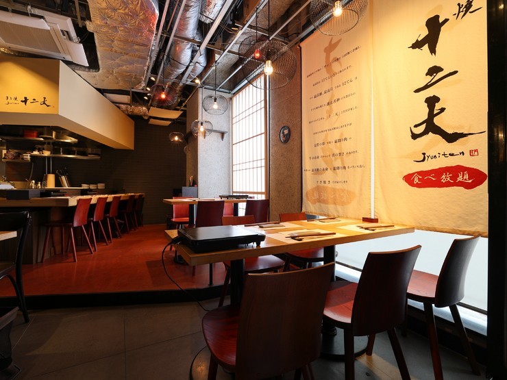 広尾駅から歩いてすぐの【食べ放題 すき焼き十二天 広尾】は、A5黒毛和牛を存分に堪能できる、すき焼き食べ放題に特化した専門店です。おかわりの肉は、スライス仕立てをゲストの鍋へ届けるスタイル。お店イチオシの特上コース『赤身と特上霜降とお野菜とお食事』では、その日の希少部位やサーロインも楽しめます。