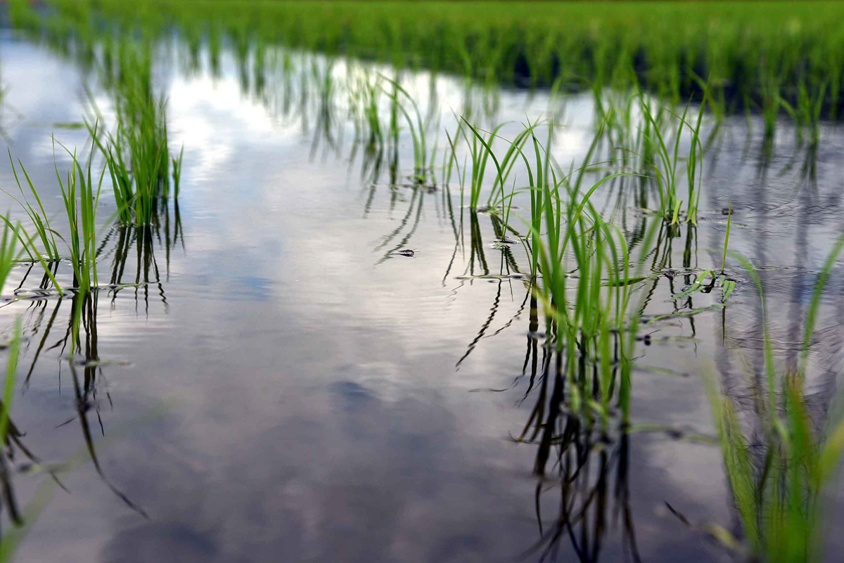 草履に適した稲藁の品種「豊国 (とよくに)」は、農家とともに手作業で植え付けます。