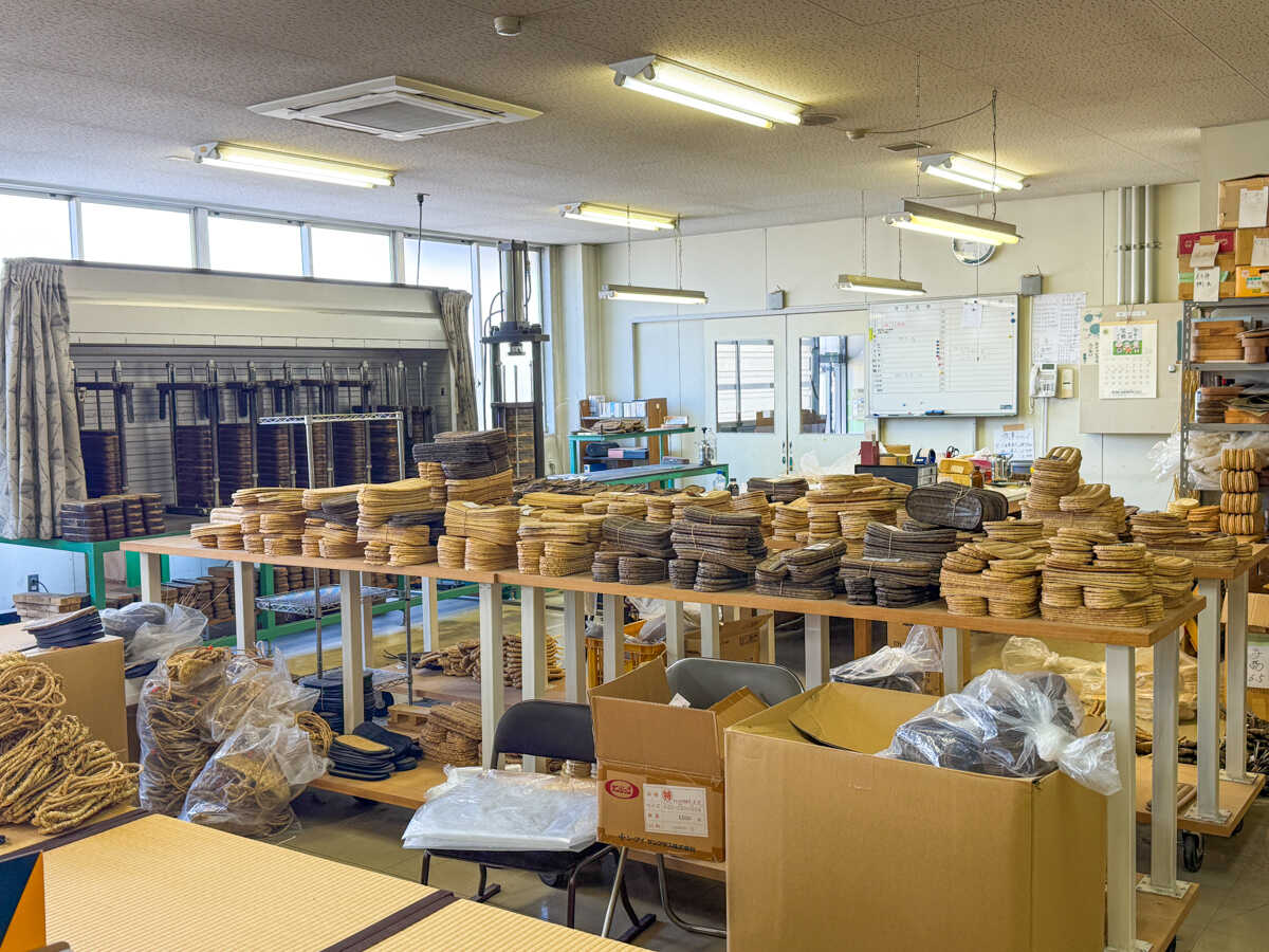 工場内に入るとたくさんの草履が!