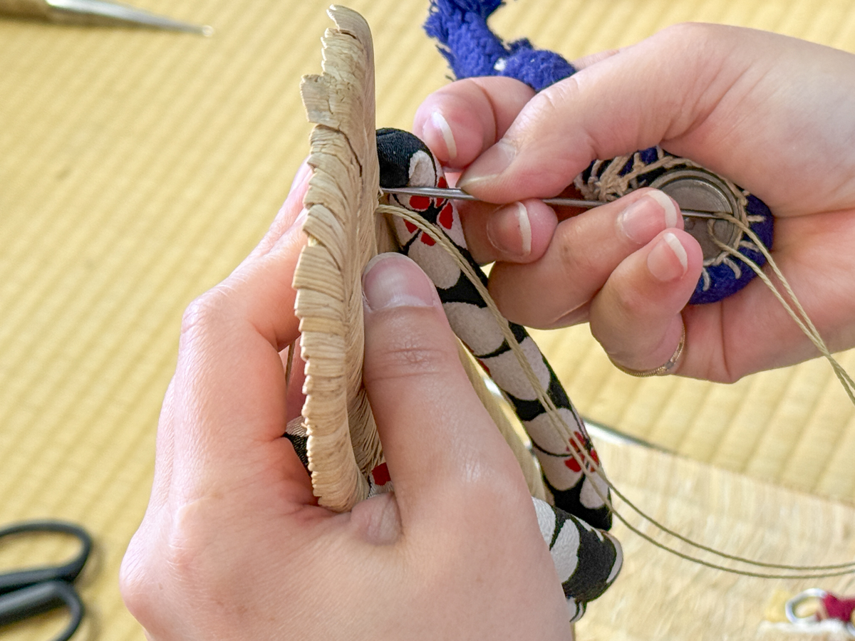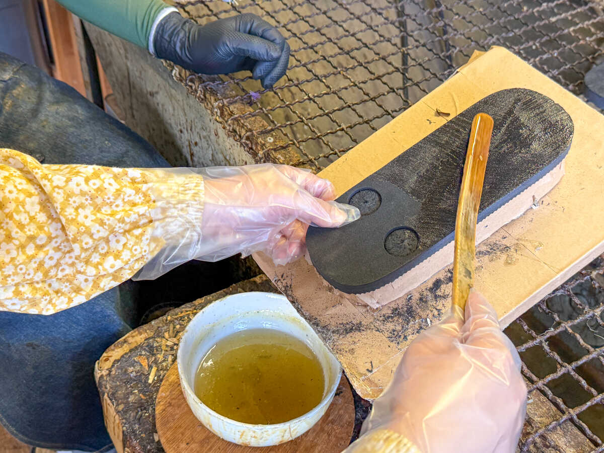 先ほど作業した草履と、底材とそれぞれにつけていきます。