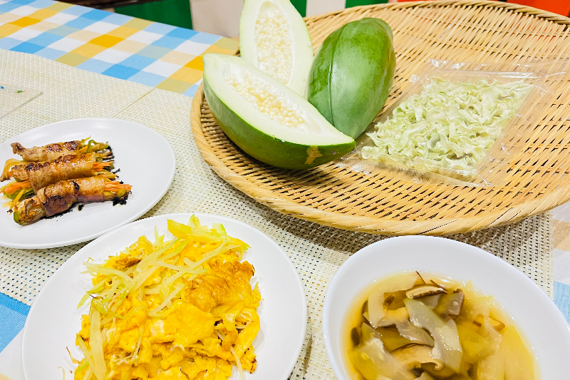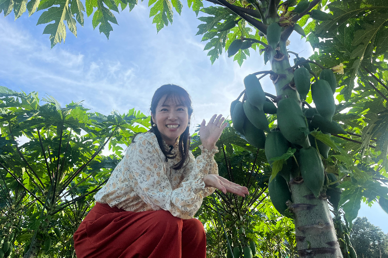 番組では青パパイヤの生産に携わっている夏越物産の夏越さんをスタジオにお招きし、家庭でも簡単に作れる青パパイヤ料理を教えてもらいました。