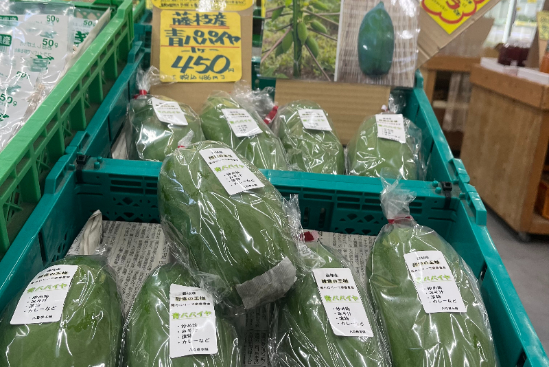 ここで栽培される青パパイヤは、同市内にある「八百屋 本陣」で購入できます。