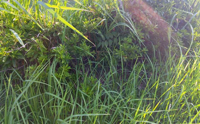 都心の釣り場ではあまりないが、地方へ行くと河川や野池の周りは最も気を付けなくてはならない。背丈ほどに伸びた草むらや、藪地帯には高確率で潜んでいる。そして、マダニの体長は通常3~8mmととても小さく目視が難しいので細心の注意が必要だ。