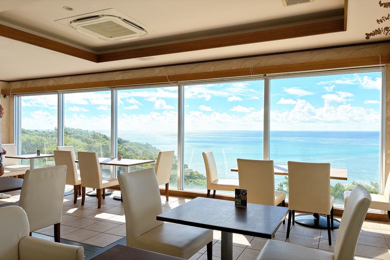 店内は白を基調とした清潔感あふれる空間。大きな窓からは南城市の自然を存分に楽しめ、人気の窓際席はもちろん、どの席からも豊かな景色を望めます。 ふと外に目を向ければ、心がほどけるような安らぎが訪れ、ここにしかない風景が訪れる人の心を静かに満たしてくれます。