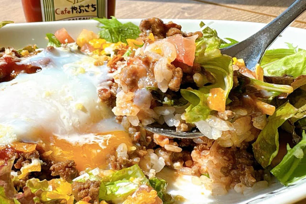 赤ワイン煮込みタコミート×とろ〜り卵!まろやかタコライスを「Cafeやぶさち」で堪能しよう♪