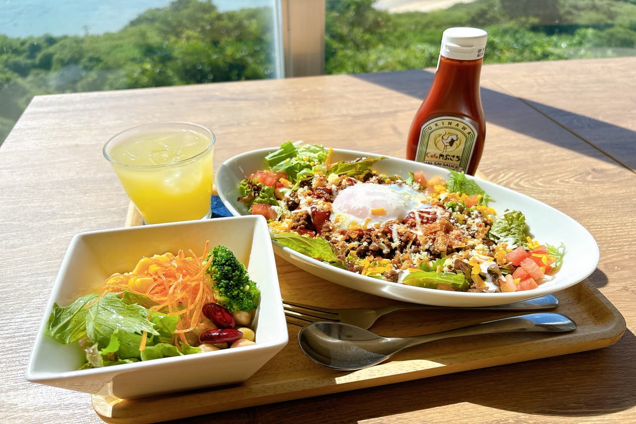 食べ進めると半熟卵がとろりとくずれ、黄金色の黄身がタコミートに絡みついてコクが増し、チーズと白米と一緒に口に入るたび、まろやかで濃厚な旨みが広がり、あっという間に完食してしまいました! これだけ食べても体がすっきりするのは、「Cafeやぶさち」が食材選びにこだわっているから。地産地消を大切にし、県産和牛やEM玉城牧場のミルク、島野菜をはじめ、黒糖やきび糖を使ったスイーツやロースイーツまで揃えています。 グルテンフリーやアレルギー対応にも取組み、誰もがあんしんして食事を楽しめる工夫が込められています。