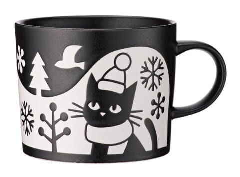 黒ねこが森の中を探索する様子が描かれた「美濃焼 黒ねこマグカップ」は、美濃焼ならではのぷっくりとした立体感のある模様が特徴です。マフラーや帽子で防寒対策をする黒ねこの姿が表現されています。白と黒を基調としたシックな色合いは、食卓に馴染みやすく日常使いに適しています。美濃焼特有の液だれや凹凸の表情はひとつひとつ異なり、磁器ならではの風合いと個性が楽しめます。