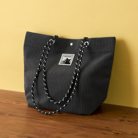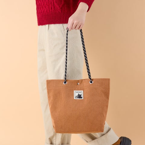 冬のお出かけに便利な「黒ねこコーデュロイバッグ」