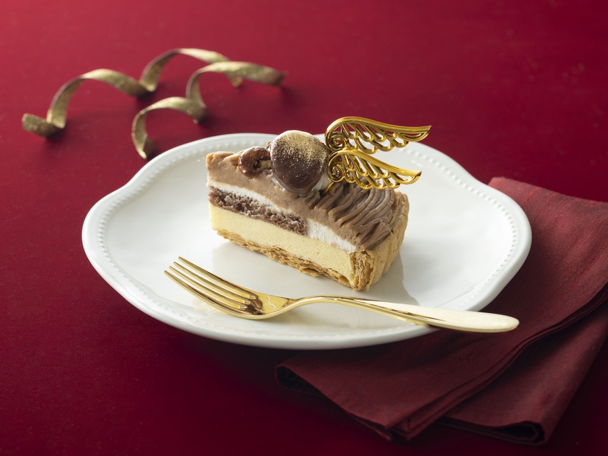 大名古屋ビルヂング内の飲食店では映画の世界観からインスパイアされたコラボレーションメニューを期間限定で販売。地下1階のタルト・焼菓子ギフト店「ラ・メゾン アンソレイユターブル パティスリー」では、栗に金の羽根の飾りをつけ金のスニッチに見立てた、見た目もかわいい特製モンブランタルトを用意。