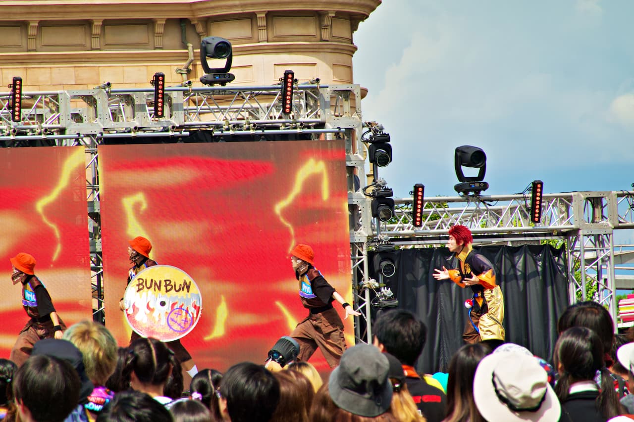 今年はショー内容も一新され、双子のポケモントレーナー“ブンブン&バンバン”が登場。DJゲンガーをめぐって対立した2人が、それぞれバケッチャとヒトモシを召喚し、ゲストを巻き込んだダンスバトルを展開します。バトルの結果によってエンディングが変わるという仕掛けもあり、会場の熱気は最高潮に。ゲストが見てノルだけではなく、参加して楽しめる要素が追加されたことで、より没入感があり、思わず自分がショーを見ていることも忘れて踊り狂ってしまいますよ!