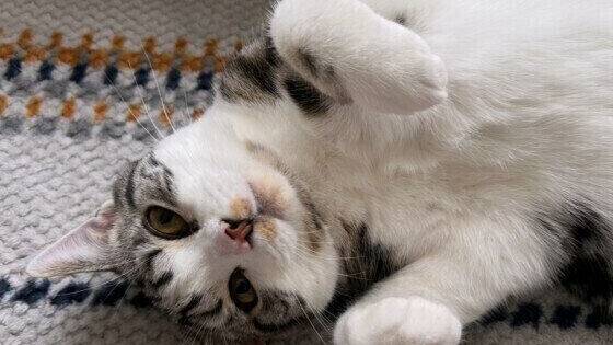 猫は、安心できる環境では、お腹を見せることがあります。いわゆるヘソ天ですね。そして、その姿勢のまま、体をくねらせることがあります。