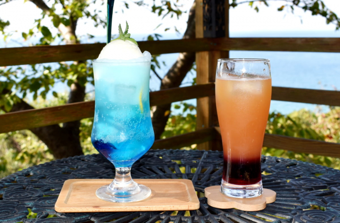 オリジナルドリンクも素敵!白と青のコントラストが美しい「クリームソーダ」は、断然海を眺めながら飲みたい1品です。使用するレモンも、もちろん自家製。