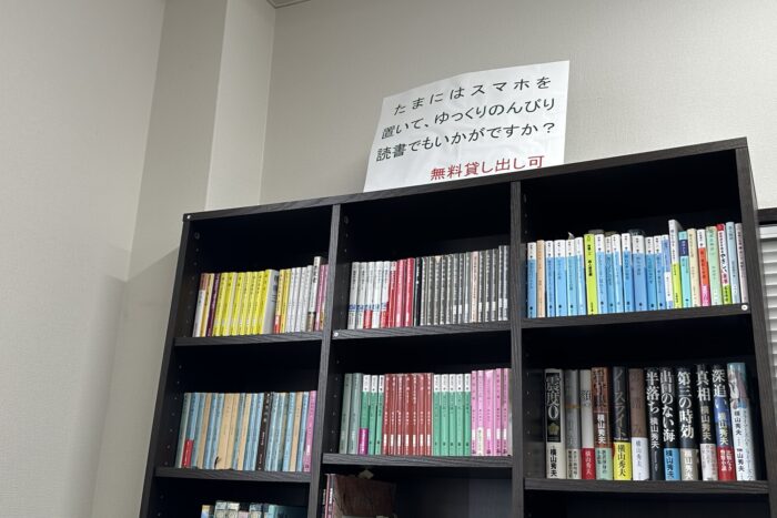 なんと本の貸し出しサービスも行っています。借りた本は次回来店時に返却するシステムです。