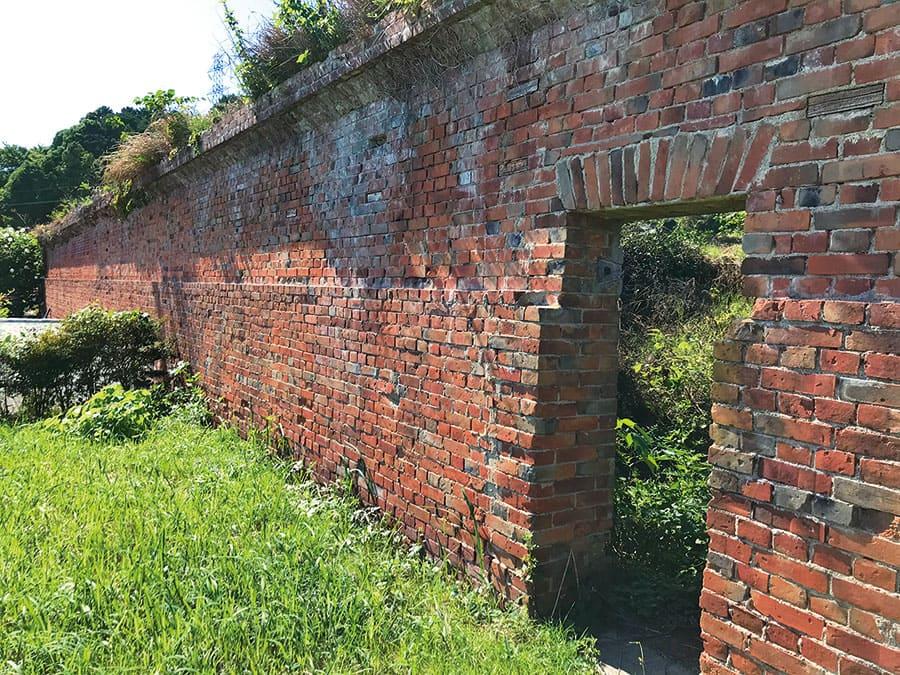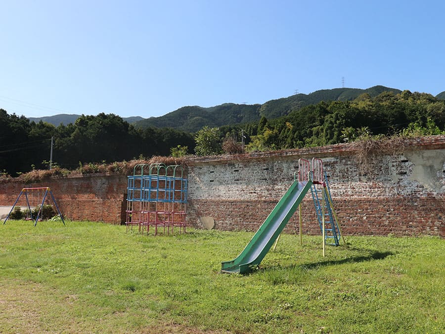 詳細はわからないが、個人の邸宅の跡ではないかと…。緑の中にレンガ壁が立つ。 住所:奈良県葛城市太田948-1