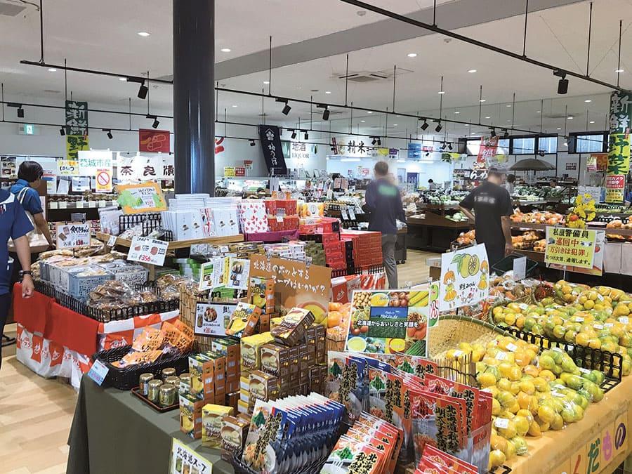 “ふるさとを面白く”がテーマの国土交通省選定重点道の駅。農産物直売所では新鮮な地元野菜や果物、花を中心に県内の特産品を販売。フードコートでは地元食材を使った料理やデザートなどを楽しめる。