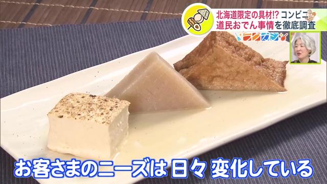 セブン-イレブン・ジャパン地区MD統括部長の八木健二さんによると「北海道ではこんにゃく芋の栽培がされず、本州からこんやく粉を仕入れていた。海藻を入れて作る製法が広まらなかったため、やわらかくて白いこんにゃくが主流となった。そうした文化に基づいて北海道では限定で白こんにゃくを取り扱っている」とのこと。