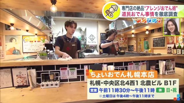 「ちょいおでん札幌本店」は道内外に9店舗展開する専門店で、鱧からとっただしを使った上品なおでんが楽しめます。