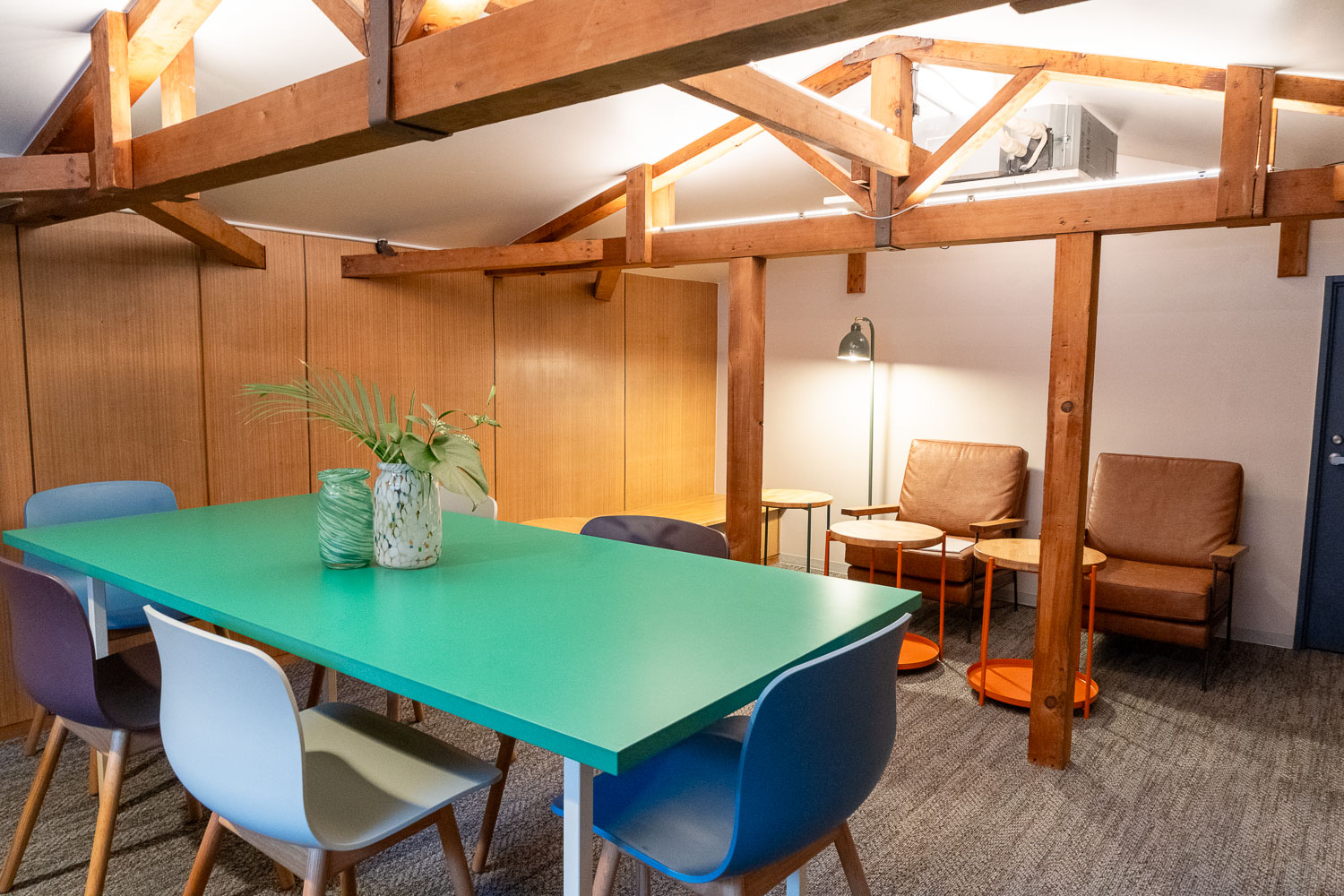 カフェがあるのは家族が居室として使っていた2階と、内部の階段で通じている3階。2階は明るいブルーを基調とし、改装時に有希さんたっての希望でガラスブロックを入れた。3階はまるで屋根裏のよう。ソファ席でうとうとする人がいるほど、リラックスできる空間になっている。