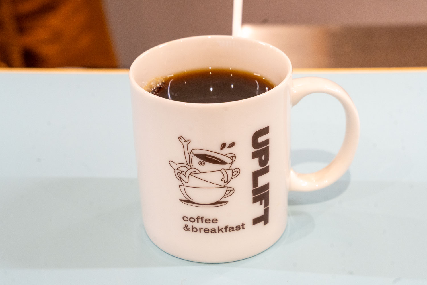 響大さんが担当するコーヒーは、昭和8年(1933)から高円寺で営業している老舗焙煎所『さわやこおふぃ』から仕入れた豆を使っている。3種類の豆を使うUPLIFTブレンドはモーニングメニューに合わせ、すっきりとした味わい。マグカップにたっぷり入っているので飲みごたえがある。