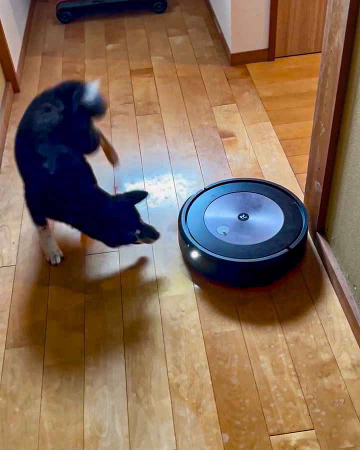 「頑張れあんこ!」と応援しながら見ているという飼い主さんですが、ロボット掃除機にはしっかり掃除をしてもらいたいですよね…
