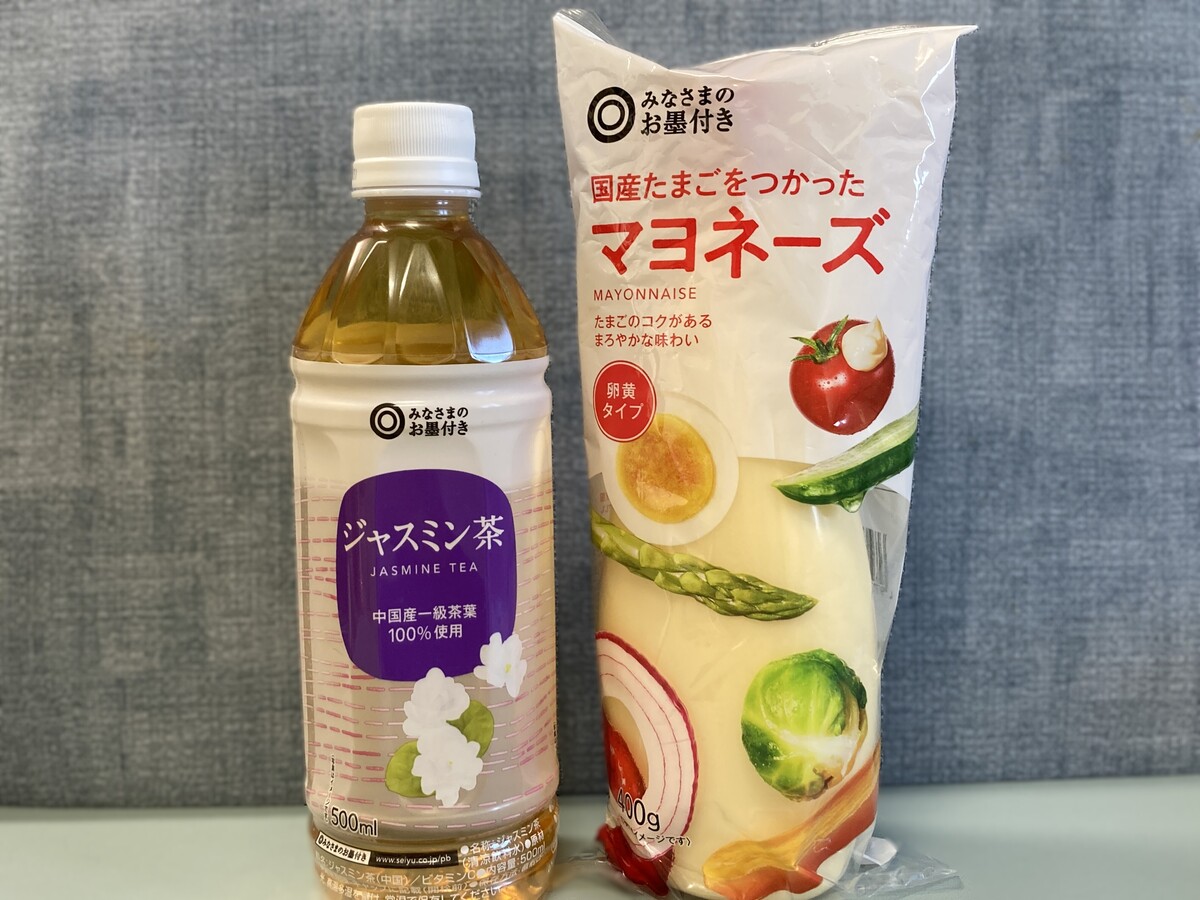 「国産たまごを使ったマヨネーズ」(税別278円)と「ジャスミンティ」(税別75円)を購入。