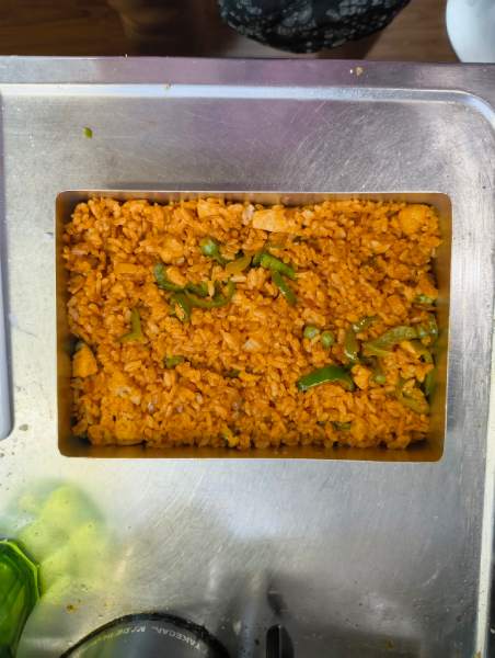 また、ガワだけでなく中身にも数々のこだわりが。メインはぎゅっと詰めたチキンライスで、上には薄焼き卵を敷き、海苔で大胆に「8番出口」「Exit8」の文字を切り出して乗せています。