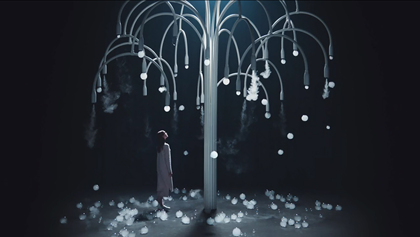 ▲A.A Murakami 《ニュー・スプリング》 2017年 アルミニウム、ロボティクス、泡、霧、香 700x700x700cm 展示風景: 「Studio Swine x COS, New Spring」ミラノサローネ2017
