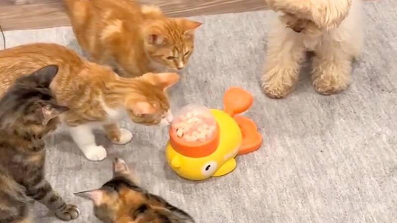 最初は先住猫さんに怒られたり睨まれたりすると、すぐに落ち込んでしまっていたというそらちゃん。今では先住猫さんに甘噛みされたら犬パンチでやり返し、猫パンチされたら負けじと甘噛みし返すというように、対等にやり合えるようになっているそう。想像以上にたくましく成長した姿に、驚いてしまいますね!