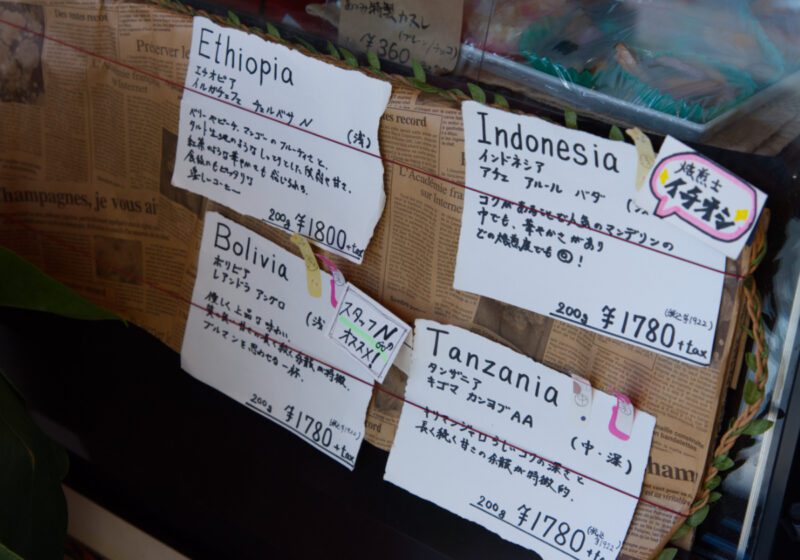 特徴的なコーヒーが浅煎り・中煎り・深煎りの3種を用意するハウスブレンド「あつみブレンド」。3種はすべて使用する生豆は同じですが、焙煎度合いが違うため、飲んだ時の印象がガラリと変わります。ちなみに使用している生豆はブラジル・グアテマラ・インドネシアで、比率も同じにしているそう。こういったブレンドはなかなか見かけないので、3種を飲み比べてみて、自分にはどの焙煎度合いが一番しっくりくるか確認する指標にしてみてもいいかもしれません。