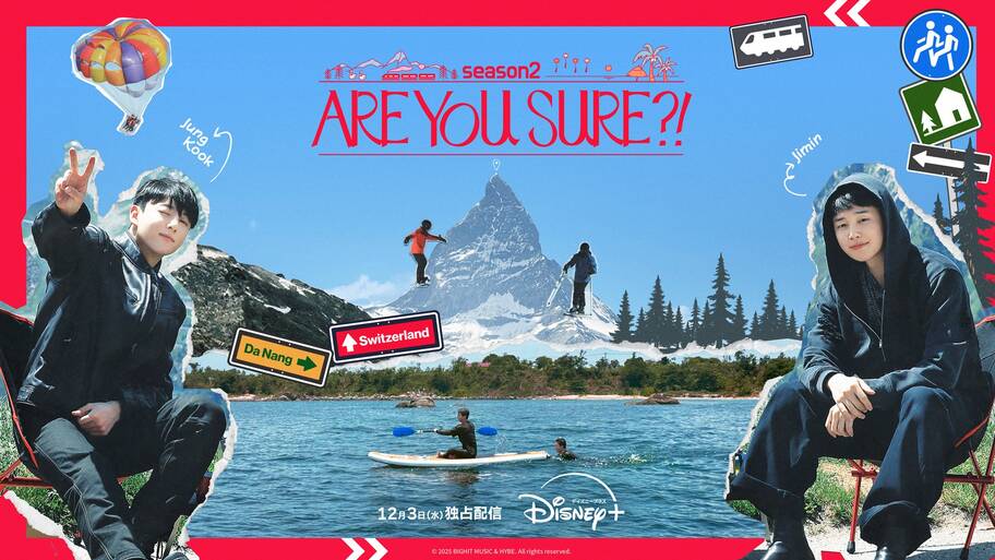 BTSの仲良しコンビ・JIMIN&JUNG KOOKの予測不能な2人旅を追う、トラベルバラエティ第二弾『Are You Sure?!』シーズン2が、12月3日(水)よりDisney+(ディズニープラス)にて独占配信される。