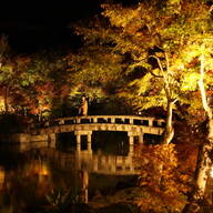 龍心池もライトアップされ、庭園を散策できる