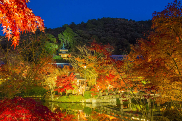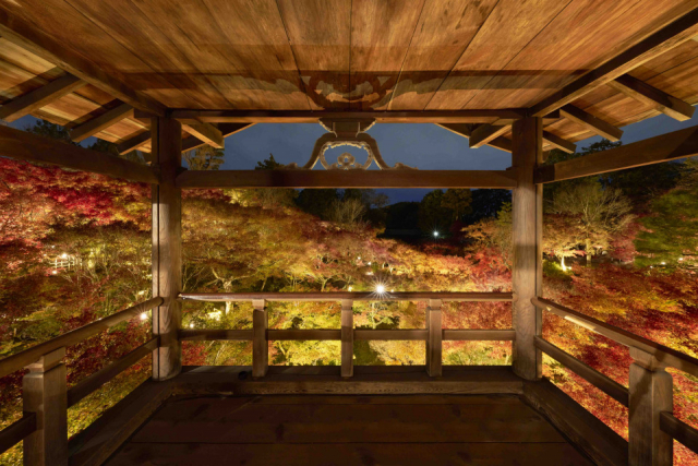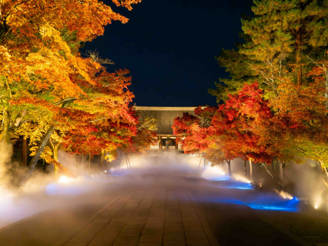 修復を終え、5年ぶりにライトアップを再開した「青蓮院」をはじめ、雲海から国宝建築が浮かびあがる「仁和寺」、プロジェクションマッピングを駆使した「元離宮二条城」、そして京紅葉のツートップ「東福寺」と「永観堂」。
