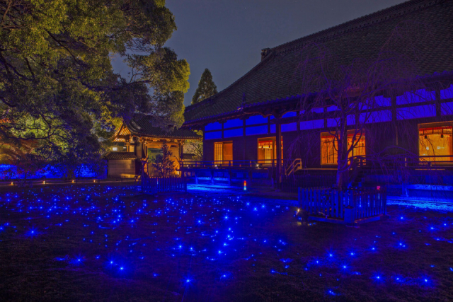 宸殿前の庭は青い光で埋め尽くされる