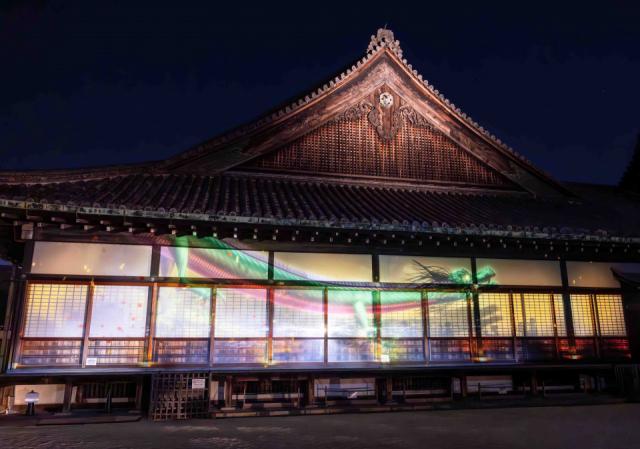 二の丸御殿の外壁にプロジェクションマッピングが映し出される(画像:NAKED meets 二条城 運営事務局提供)