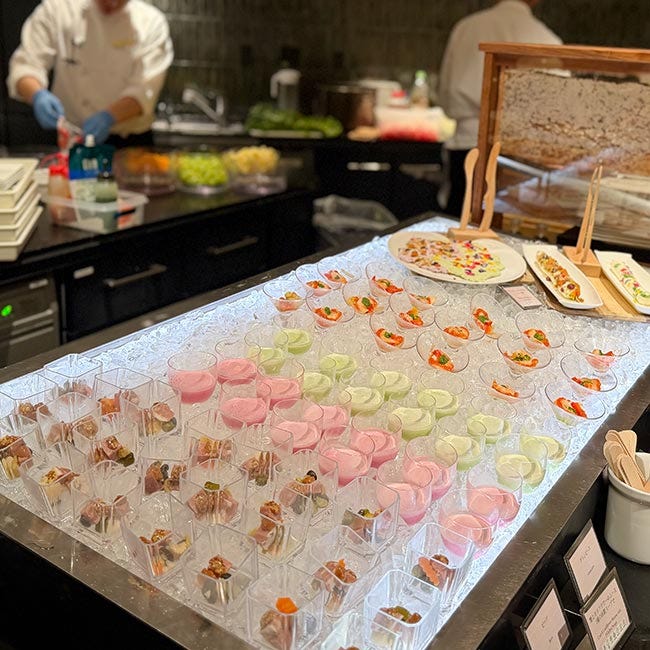 そこで、ビュッフェ専門YouTubeのモチ子さんと詳細をレポート。ローストビーフ、寿司、天ぷら、いちごが主役のデザートを好きなだけ。さらに、平日限定のタイムサービスも。