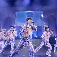 クラブさながらに会場全体がレーザー光線に包まれる「WATCH WHAT YOU BE」では、本ツアーの大人気グッズとなったThe 扇子が会場全体で踊るように舞う。