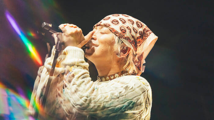 つづく「Bet On Me」は自身を鼓舞するような力強い楽曲で、ダンサーズも登場し一気に華やかな空気に。原曲よりも自由に跳ねる草間信一の鍵盤と、身体の奥底に響くSOKUSAIのBassアレンジ。