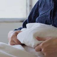 クッションにオデコをつけて眠っていたというおかかちゃん。キュッと丸まった手が赤ちゃんのようだったといいます。