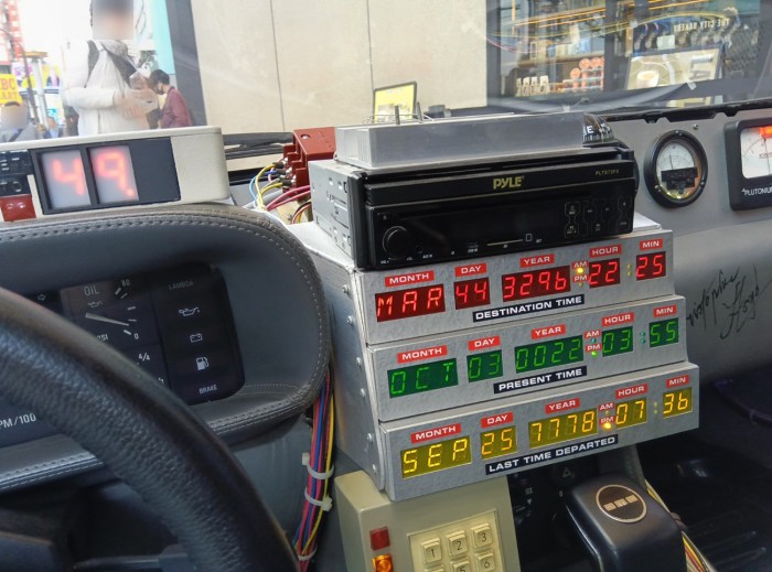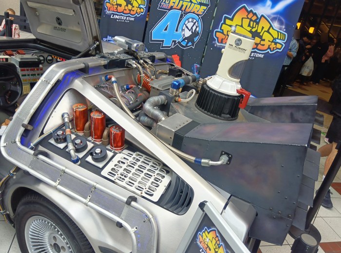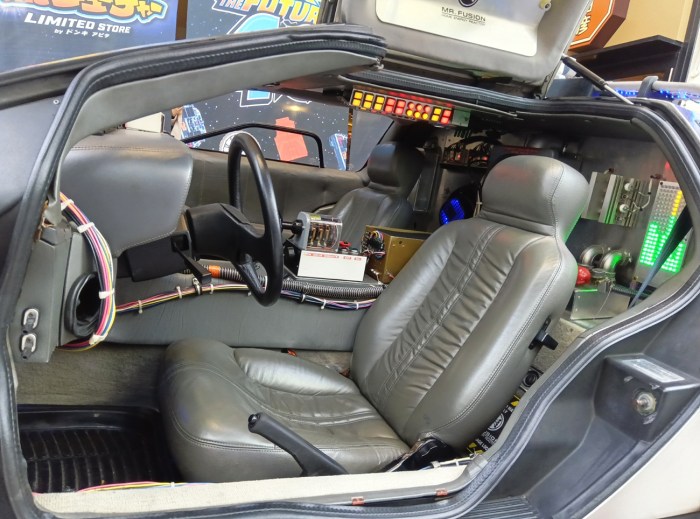 それにしてもこれは見事なデロリアンだ。かつてトヨタのショーケースで見たデロリアンは現実に販売されたスポーツカー仕様だったけど、こちらは完全にBTTF仕様。後部にもちゃんとタイムサーキットの動力源であるミスターフュージョンが搭載されている。こんな街中になぜ? 気になったので乗ってみることにした。