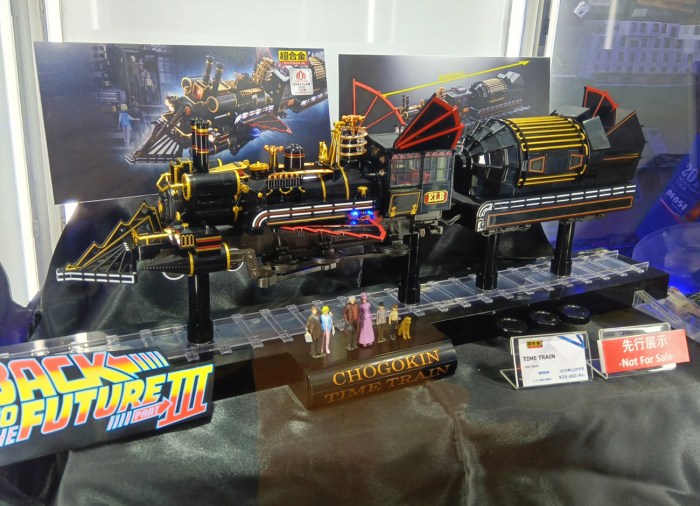 また、ホバーボートデザインのスケートボードとか、『BACK TO THE FUTURE PartⅢ』の最後に出てきたタイムトレインの超合金とか、グッズも見るだけでも楽しいものが揃っている。さすが1作目公開40周年。
