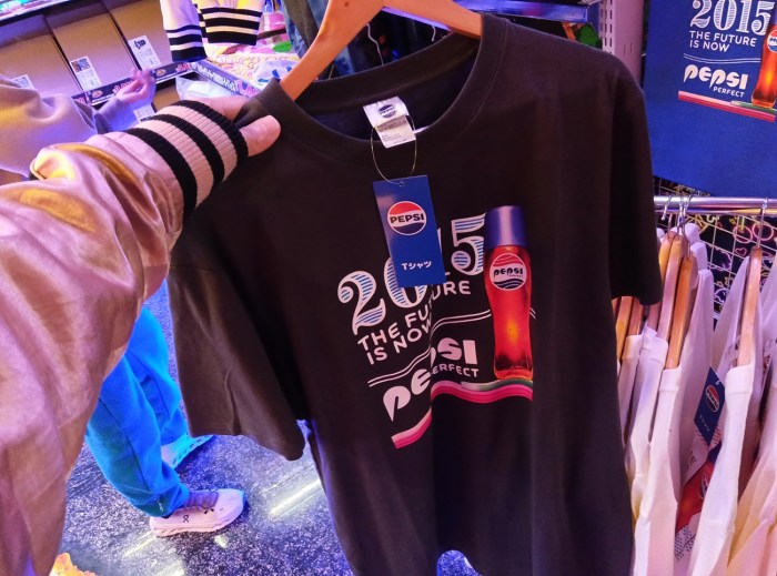 で、私が購入したのは未来のペプシTシャツ。税込2189円だし、普通に着れるデザインが気に入りました。