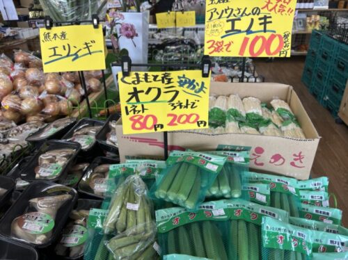 エノキが3袋で100円・オクラも3ネット200円などと安すぎる...