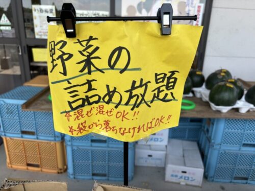 そして外せない「野菜の詰め放題」 こちらは後ほどご紹介。 夏が過ぎると外では24時間の無人販売も行っているらしいです。 それでは店内へ行ってみましょう。