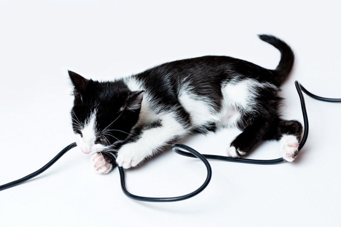 特に、永久歯へ生え変わる時期の子猫は、歯のむず痒さを解消するために、熱心にケーブルをかじりがちです。