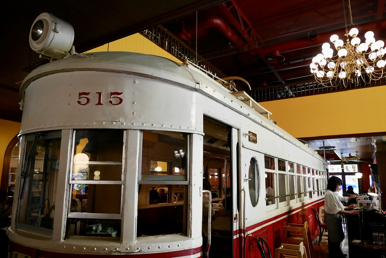 店内には実際に岐阜市内で走行していた電車車両があり、その中でも食事ができます。アメリカンポップなインテリアも魅力的です!
