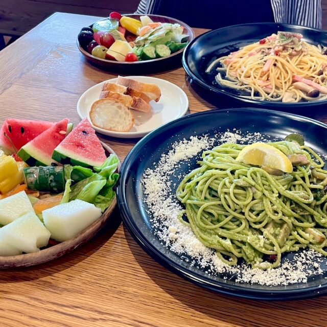 自然光がたっぷり入る開放的な店内で、旬のフルーツ食べ放題とともにパスタが楽しめます。ショッピングの合間に立ち寄りやすいのも魅力です♪