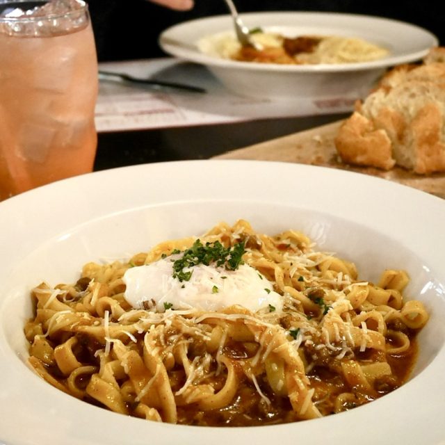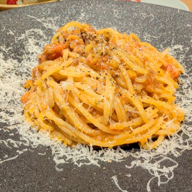 自家製のミートソースに生クリームとオリーブを加え、ニンニクと唐辛子でパンチを効かせたジャンキーな味わい。中毒性が高く、一度食べたらまた食べたくなる美味しさです◎