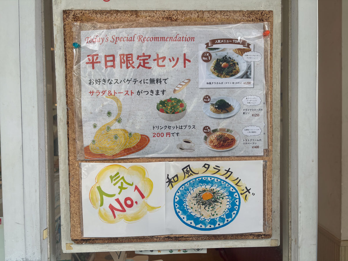 レトロで温かみのある店内には、黒板に描かれたメニューがとってもかわいらしい!パスタはソースごとに細かく分類されており、その種類の豊富さに驚かされます♪