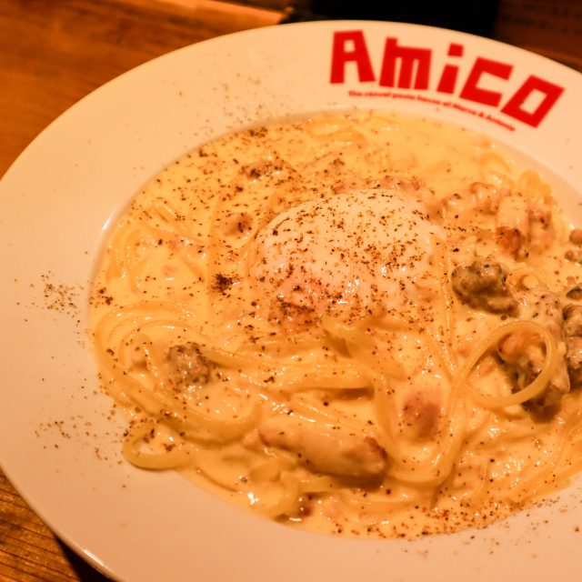 時間が経つほどクリームがパスタと絡んでさらに美味しくなるので、ゆっくり会話を楽しみながら味わうのもおすすめですよ◎